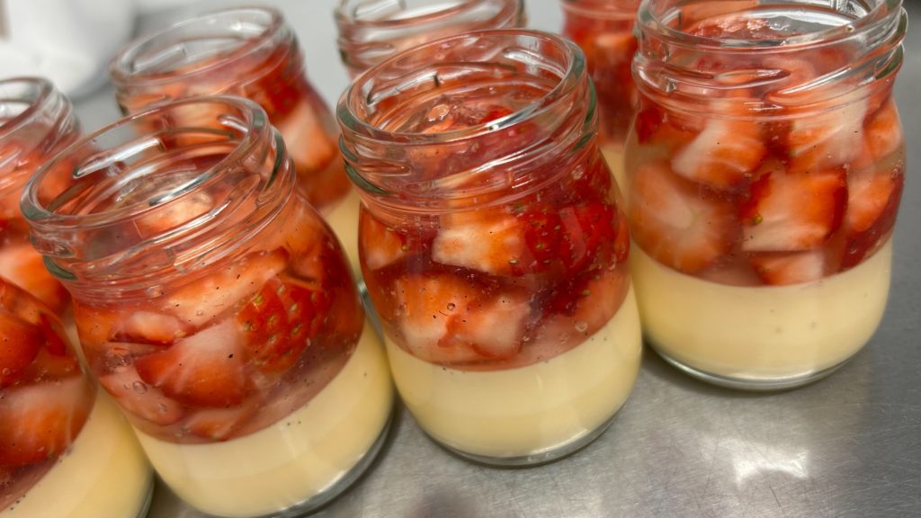 このいちごプリンは上側がいちごとジュレ、下側がプリンという2層の構造になっています。